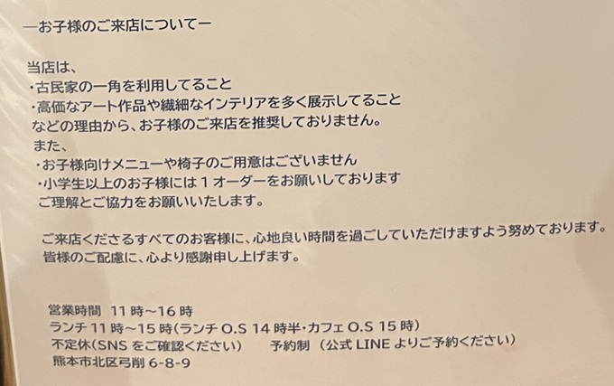 | 営業時間 | 11:00~16:00(ランチL.O.14:30 カフェL.O.15:00) |