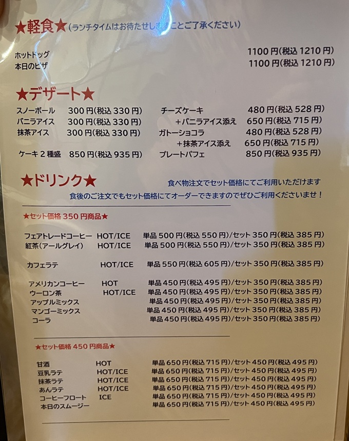尚、下のメニューの内容・価格は私が伺った時点のものですので、ご了承下さいませ。