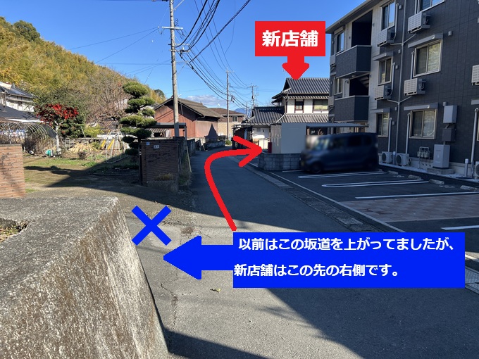 以前のお店の場所をご存知の方は、『坂を上らず真っすぐ行って右側』です(^_-)-☆